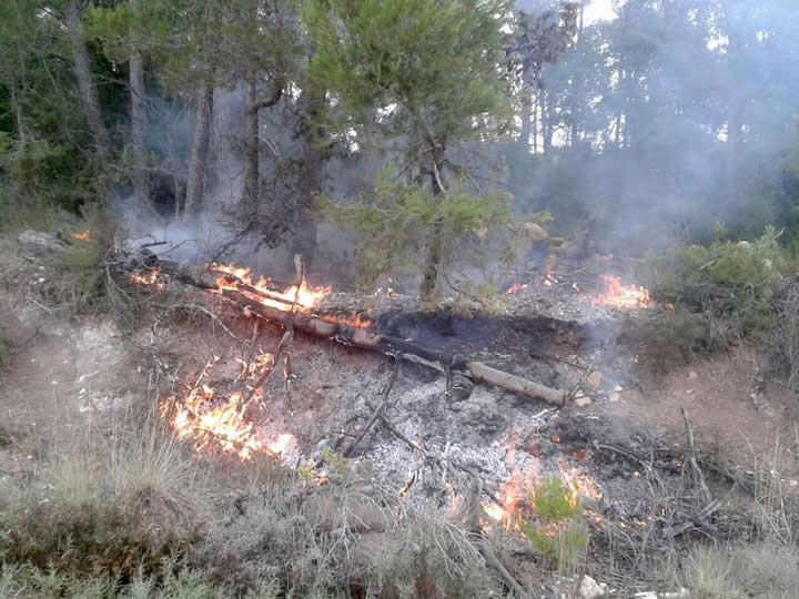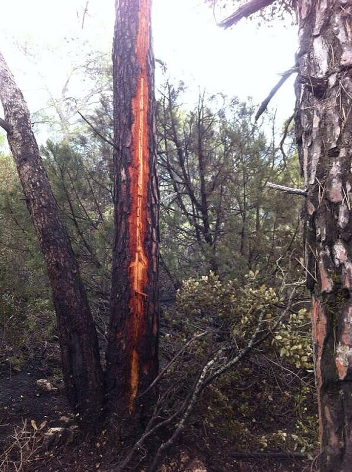 El 17 d'agost de 2013 es va efectuar una sortida a la Serra per apagar l'incendi provocat per un llamp. un exemple d'un fet que passa fàcilment en moments de tempesta: un llamp arriba al bosc a través del tronc d'un pi (que actua com a parallamps) ocasionant un incendi que, de vegades, pot manifestar-se hores després de la tormenta. |
