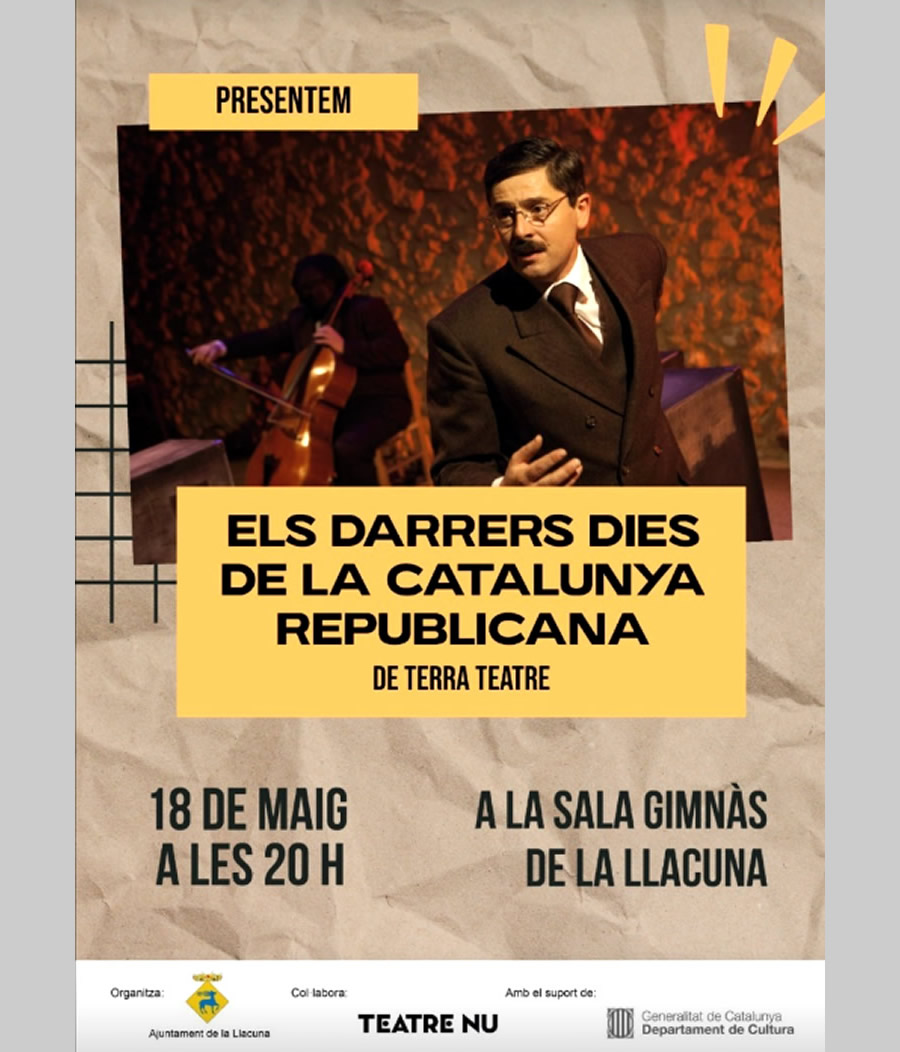 Dissabte 18 de maig, a les 8 del vespre, representació de l’obra teatral “Els darrers dies de la Catalunya republicana” a càrrec de Terra teatre