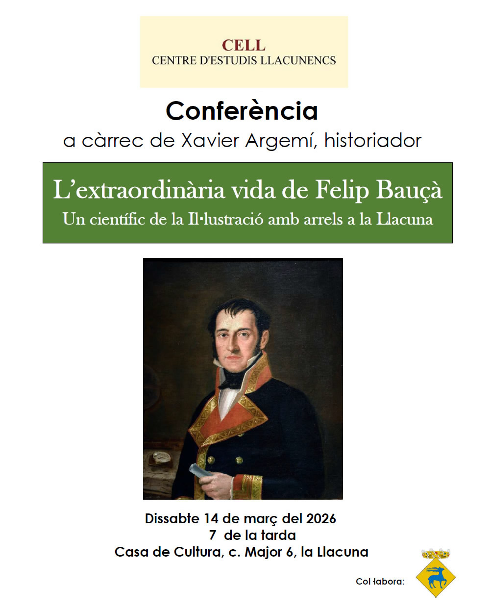 Dissabte 14 de març, l’historiador Xavier Argemí parlarà de la vida i obra de Felip Bauçà, un científic de la Il·lustració amb relació familiar a la Llacuna.